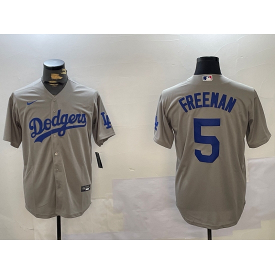 Men's Los Angeles Dodgers #5 Freddie Freeman Grey Cool Base Jersey