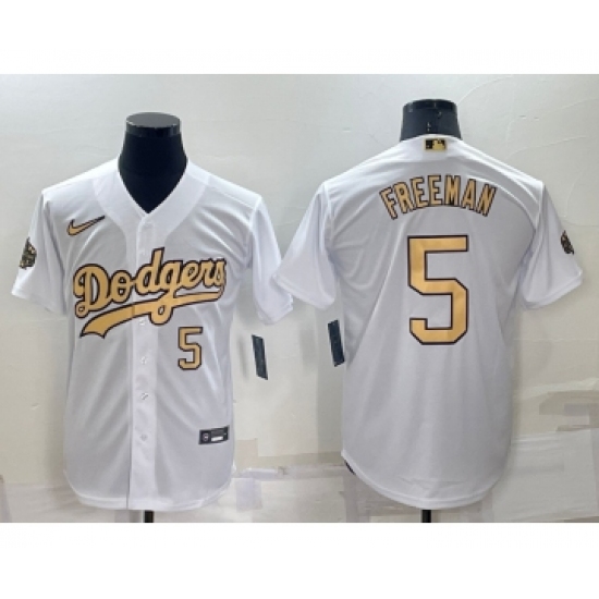 Men's Los Angeles Dodgers #5 Freddie Freeman Number White 2022 All Star Stitched Cool Base Nike Jersey