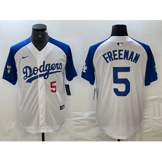Men's Los Angeles Dodgers #5 Freddie Freeman Number White Blue Fashion Stitched Cool Base Limited Jerseys