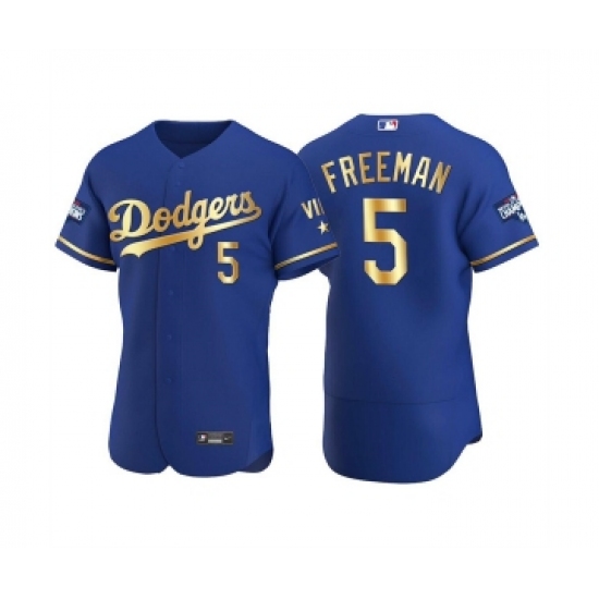 Men's Los Angeles Dodgers #5 Freddie Freeman Royal Golden Flex Base Stitched Jersey