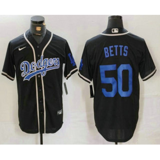 >Men's Los Angeles Dodgers #50 Mookie Betts Black Cool Base With Stitched Baseball Jersey