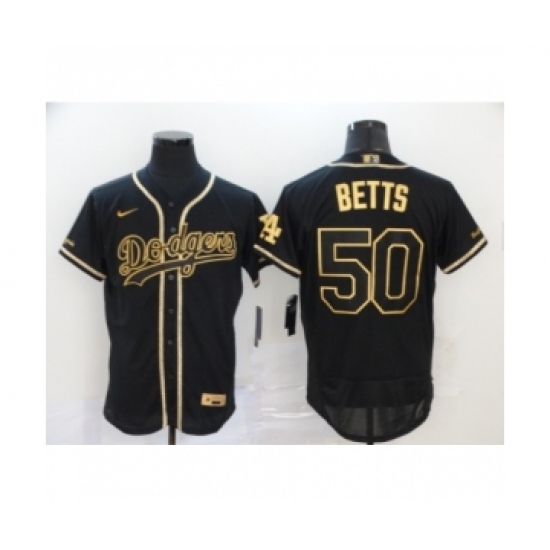 Men's Los Angeles Dodgers #50 Mookie Betts Black Gold 2020 Flexbase Jersey