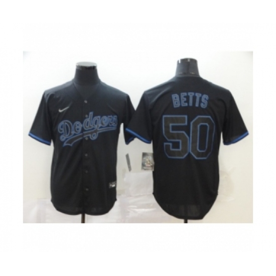 >Men's Los Angeles Dodgers #50 Mookie Betts Black Shadow 2020 Cool Base Jersey