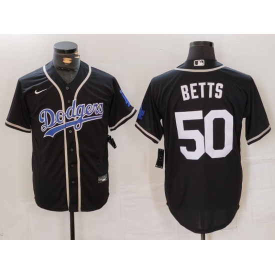 Men's Los Angeles Dodgers #50 Mookie Betts Black White Cool Base Stitched Jersey
