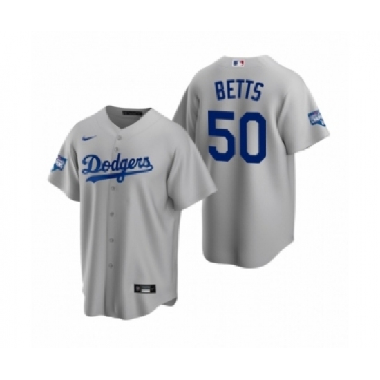 >Men's Los Angeles Dodgers #50 Mookie Betts Gray 2020 World Series Champions Replica Jersey