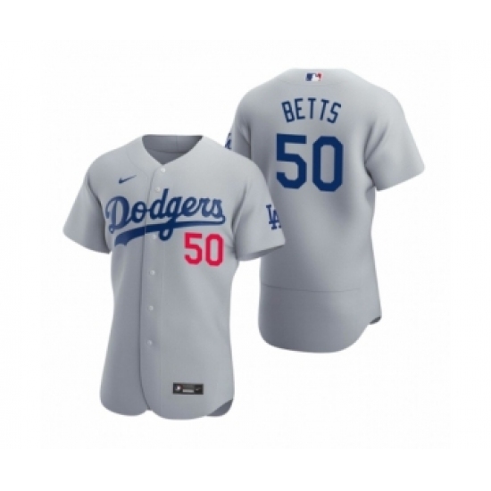 >Men's Los Angeles Dodgers #50 Mookie Betts Gray Authentic 2020 Alternate Jersey