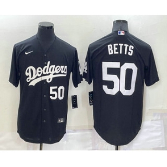 >Men's Los Angeles Dodgers #50 Mookie Betts Number Black Turn Back The Clock Stitched Cool Base Jersey