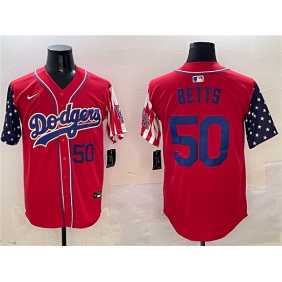 Men's Los Angeles Dodgers #50 Mookie Betts Red Limited Stitched Baseball Jersey