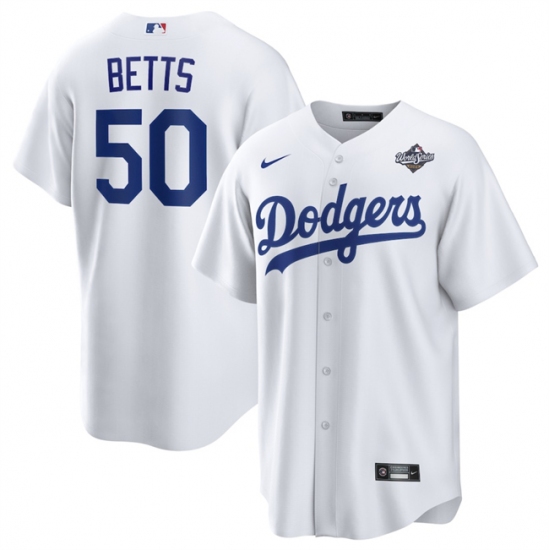 >Men's Los Angeles Dodgers #50 Mookie Betts White 2025 World Series Home Cool Base Stitched Baseball Jersey