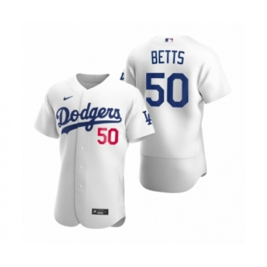 Men's Los Angeles Dodgers #50 Mookie Betts White Authentic 2020 Home Jersey