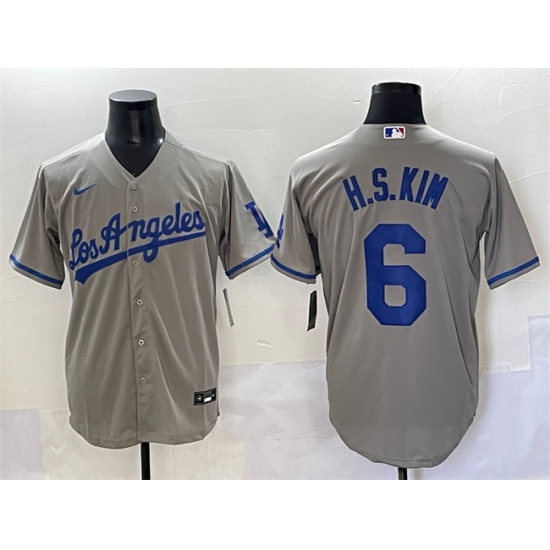 Men's Los Angeles Dodgers #6 H.S.Kim Gray Cool Base Stitched Baseball Jersey
