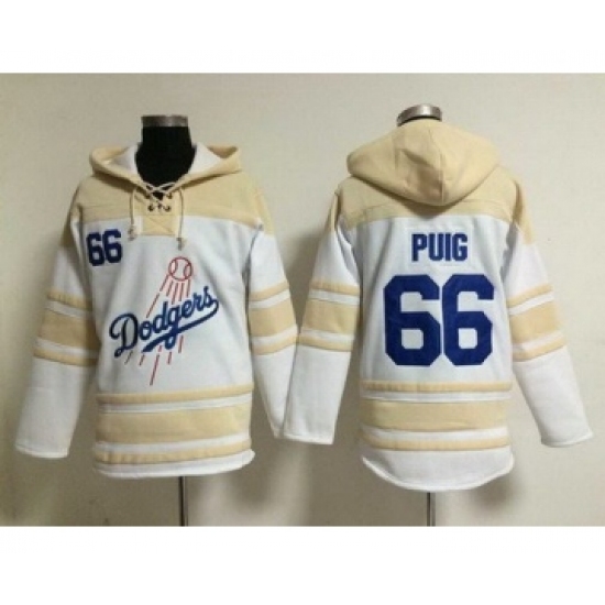 >Men's Los Angeles Dodgers #66 Yasiel Puig Home White Hoodie