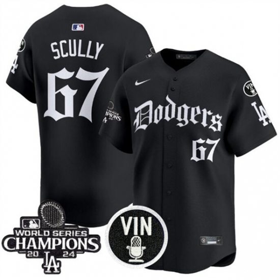 Men's Los Angeles Dodgers #67 Vin Scully Black Mexico 2025 LA Gothic Style With Vin And 2024 World Series Champions Vapor Premier Limited Stitched Baseball