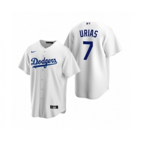 >Men's Los Angeles Dodgers #7 Julio Urias Nike White Replica Home Jersey