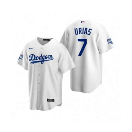 >Men's Los Angeles Dodgers #7 Julio Urias White 2020 World Series Champions Replica Jersey
