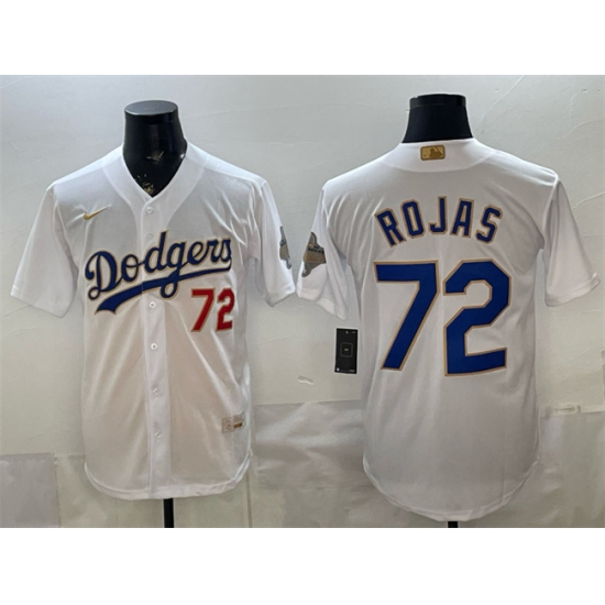 Men's Los Angeles Dodgers #72 Miguel Rojas White 2026 Gold Collection Stadium Stitched Baseball Jersey