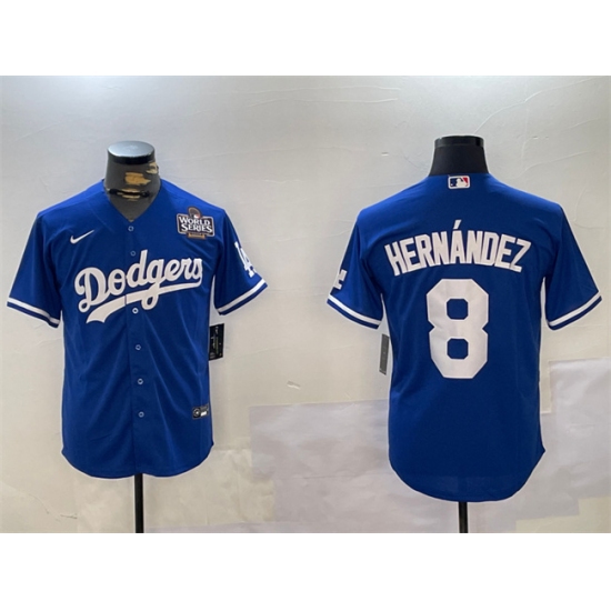 >Men's Los Angeles Dodgers #8 Enrique Hernández Royal 2024 World Series Cool Base Stitched Baseball Jersey