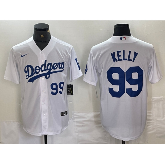 Mens Los Angeles Dodgers #99 Joe Kelly Number White Stitched Cool Base Nike Jersey