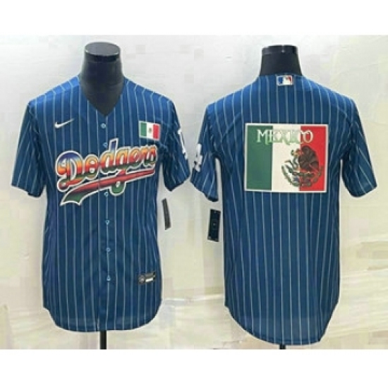 Men's Los Angeles Dodgers Big Logo Navy Blue Pinstripe Stitched MLB Cool Base Nike Jersey2
