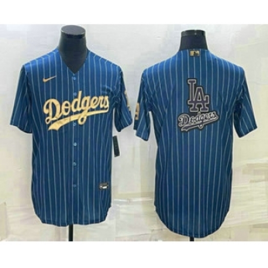Men's Los Angeles Dodgers Big Logo Navy Blue Pinstripe Stitched MLB Cool Base Nike Jerseys