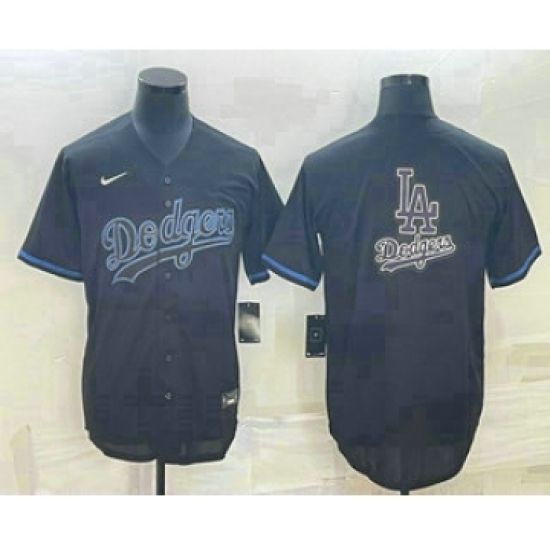 Men's Los Angeles Dodgers Black Team Big Logo Cool Base Stitched Baseball Jersey3