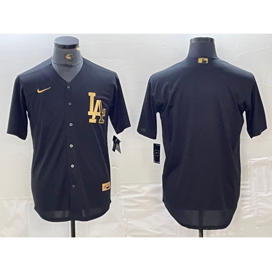Men's Los Angeles Dodgers Blank Black Gold Cool Base Stitched Jersey