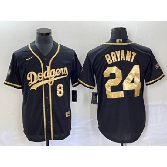 Men's Los Angeles Dodgers Front #8 Back #24 Kobe Bryant Black Gold Limited Stitched Jersey