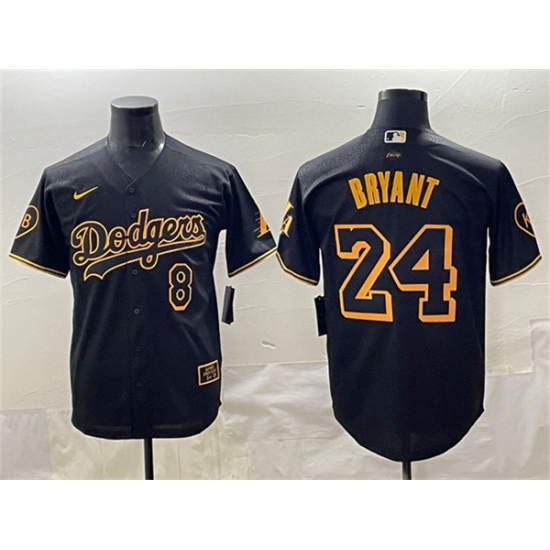 Men's Los Angeles Dodgers Front #8 Back #24 Kobe Bryant Black With KB Stitched Jersey