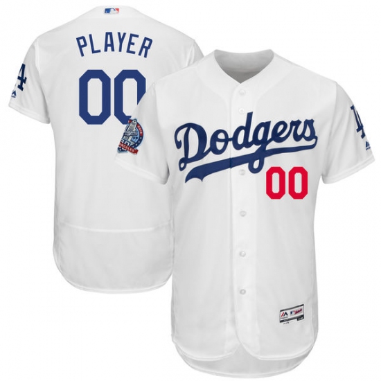 Men's Los Angeles Dodgers Majestic White 60th Anniversary Home On-Field Patch Flex Base Custom Jersey