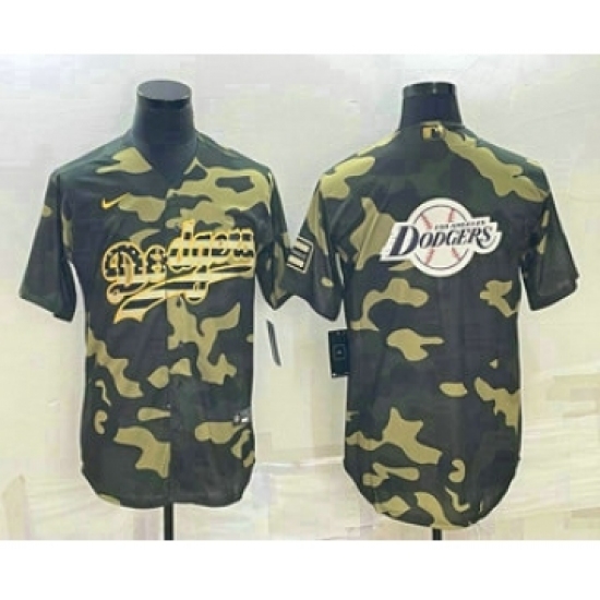 Men's Los Angeles Dodgers Olive Team Big Logo Cool Base Stitched Baseball Jersey1
