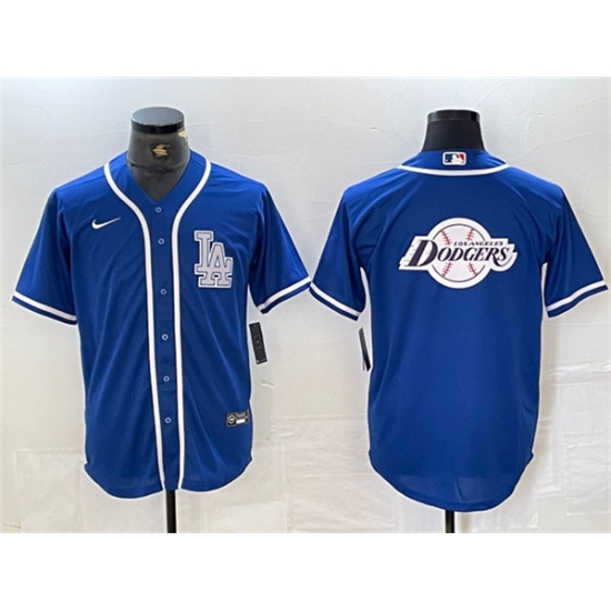 Men's Los Angeles Dodgers Team Big Logo Blue Cool Base Stitched Baseball Jersey1