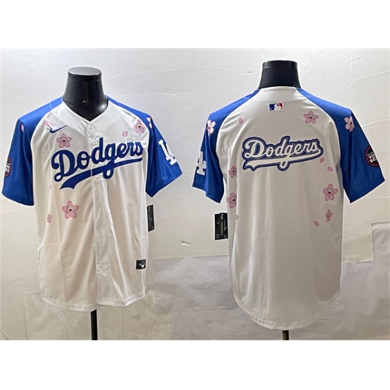 >Men's Los Angeles Dodgers Team Big Logo White Royal 2025 Tokyo Series Limited Stitched Baseball Jersey