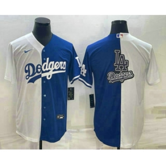 Men's Los Angeles Dodgers White Blue Split Team Big Logo Cool Base Stitched Baseball Jersey