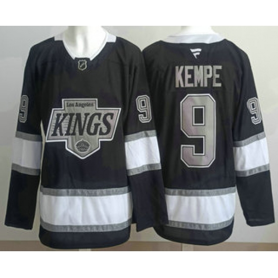 >Men's Los Angeles Kings #9 Adrian Kempe Black Alternate Authentic Jersey