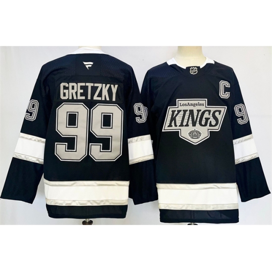Men's Los Angeles Kings #99 Wayne Gretzky Black 2024-25 Home With C Stitched Hockey Jersey
