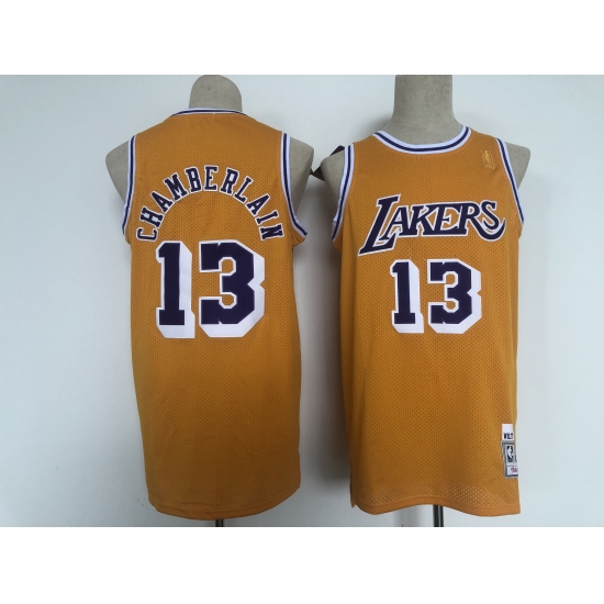 Men's Los Angeles Lakers #13 Wilt Chamberlain Swingman Gold Throwback Jersey