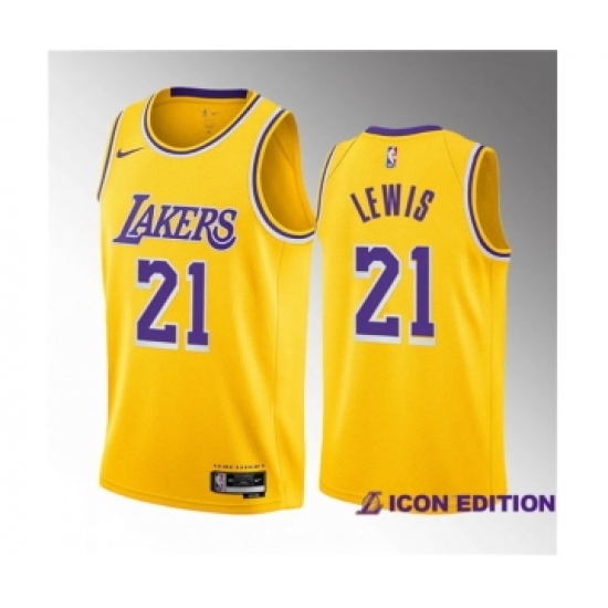 >Men's Los Angeles Lakers #21 Maxwell Lewis Yellow 2023 Draft Icon Edition Stitched Basketball Jersey