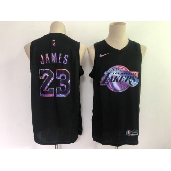 Men's Los Angeles Lakers #23 LeBron James Black Iridescent Holographic 2021 Jersey