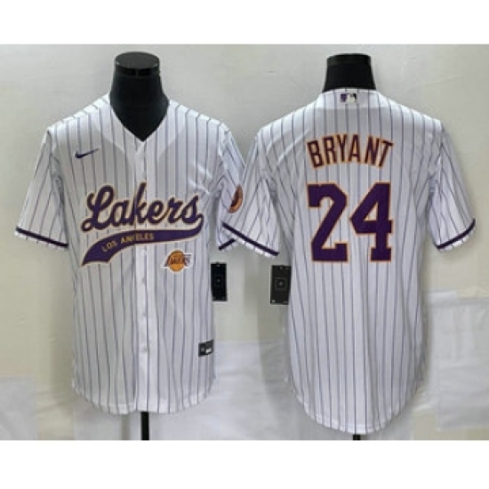 Men's Los Angeles Lakers #24 Kobe Bryant White Pinstripe Cool Base Stitched Baseball Jersey