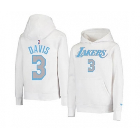 >Men's Los Angeles Lakers #3 Anthony Davis 2021 White Pullover Basketball Hoodie