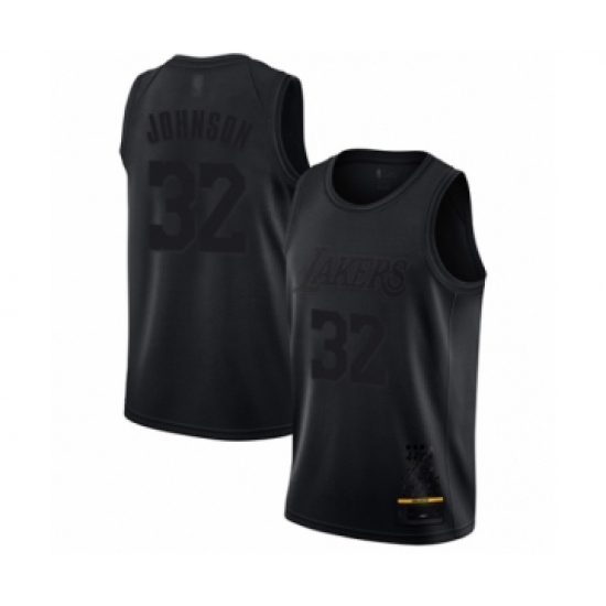 >Men's Los Angeles Lakers #32 Magic Johnson Swingman Black MVP Basketball Jersey