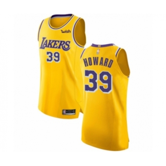 >Men's Los Angeles Lakers #39 Dwight Howard Authentic Gold Basketball Jersey - Icon Edition