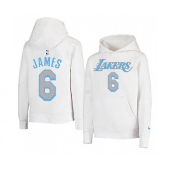 >Men's Los Angeles Lakers #6 LeBron James 2021 White Pullover Basketball Hoodie