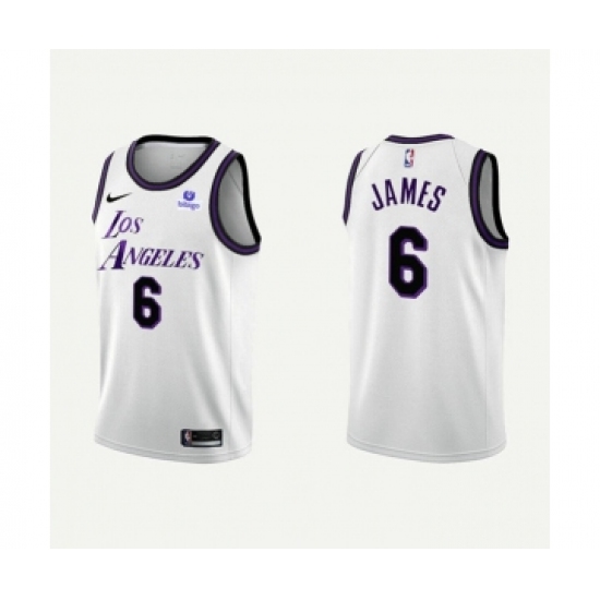 >Men's Los Angeles Lakers #6 LeBron James 2022-23 White Stitched Basketball Jersey