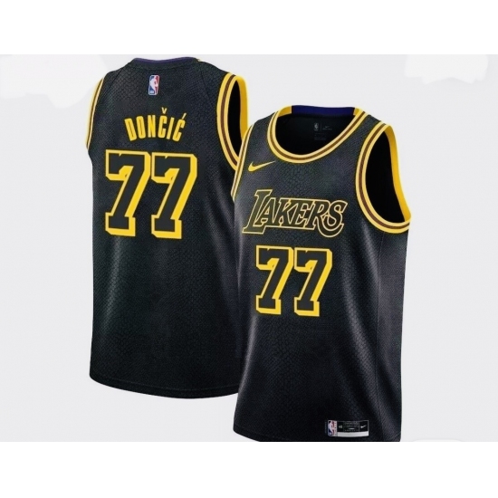Men's Los Angeles Lakers #77 Luka Doncic Black Stitched Jersey