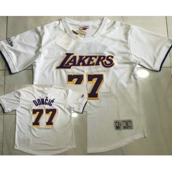 Men's Los Angeles Lakers #77 Luka Doncic White Short Sleeved AU Throwback Jersey