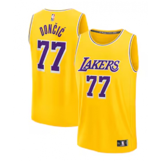 Men's Los Angeles Lakers #77 Luka Dončić Fanatics Gold Fast Break Replica Player Jersey
