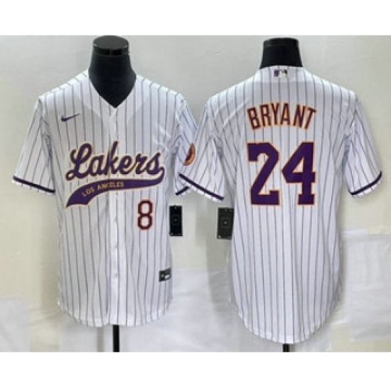 Men's Los Angeles Lakers #8 #24 Kobe Bryant White Pinstripe Cool Base Stitched Baseball Jersey