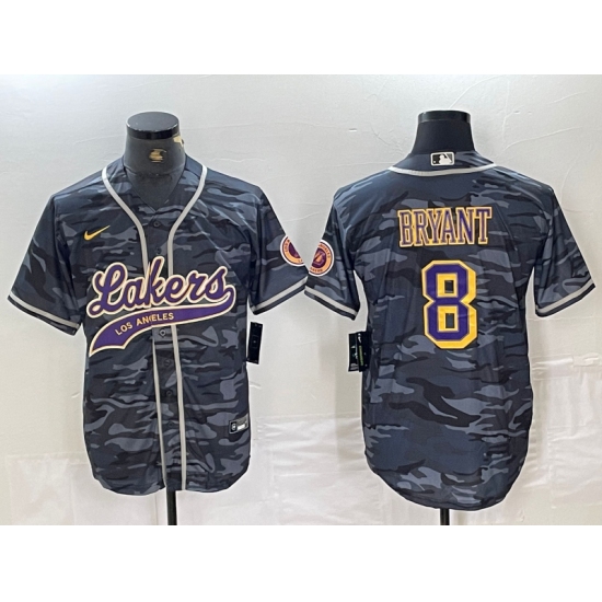 Men's Los Angeles Lakers #8 Kobe Bryant Grey Camo Cool Base Stitched Baseball Jersey