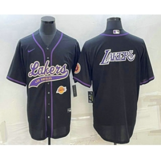 Men's Los Angeles Lakers Black Big Logo With Cool Base Stitched Baseball Jersey